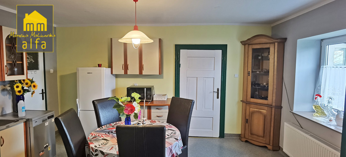 Na dzień dzisiejszy, jedno mieszkanie 82 m² na poddaszu budynku mieszkalno gospodarczego wynajmuje lokator i jest stały dochód.