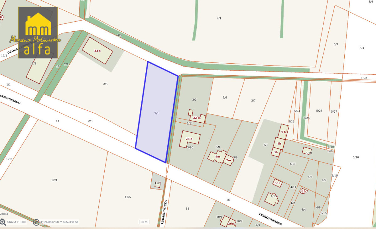 Biuro nieruchomości Alfa ma przyjemność zaprezentować działkę inwestycyjną przy ulicy Łyskowskiego z bezpośrednim wjazdem z drogi głównej.