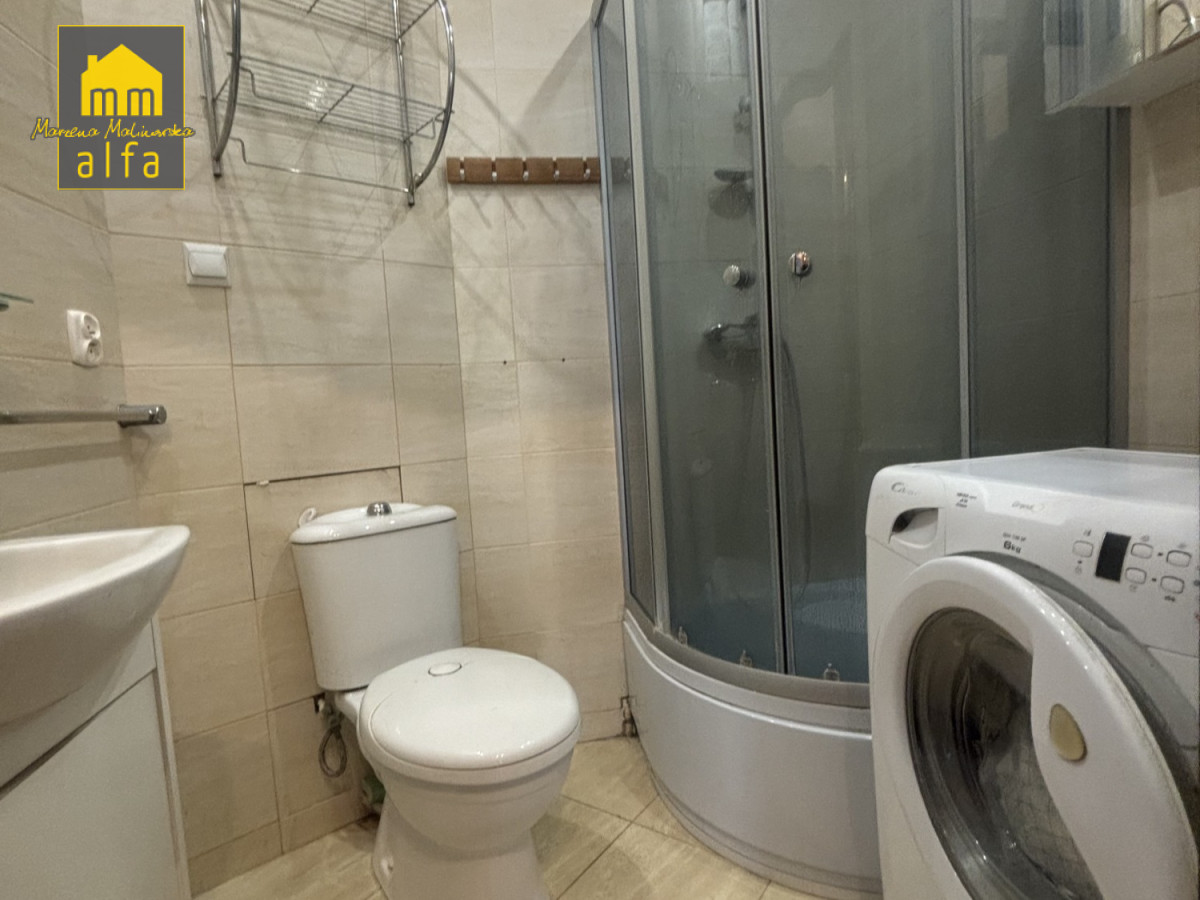 W skład lokalu wchodzą salon połączony z kuchnią, sypialnia, łazienka z WC oraz przedpokój.