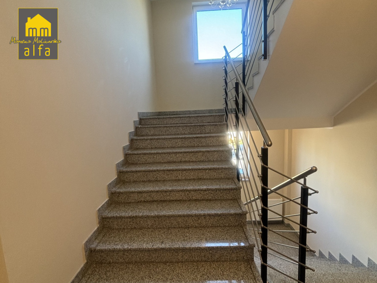 Cała nieruchomość jest ładnie utrzymana, budynek stosunkowo nowy,
